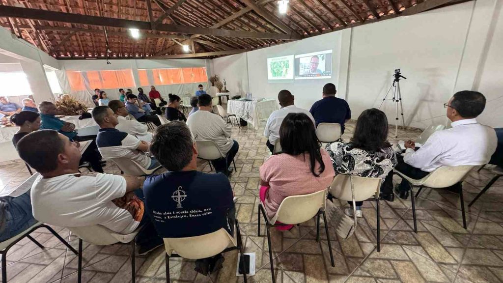 Após a acolhida, a palavra foi direcionada a Dom Dirceu de Oliveira Medeiros, através de uma videochamada. O bispo de Camaçari/BA e presidente do regional Nordeste 3 (Bahia e Sergipe) da Conferência Nacional dos Bispos do Brasil (CNBB), foi um dos cinco delegados eleitos pelo episcopado brasileiro para participar das sessões mundiais dos XVI Assembleia Geral Ordinária do Sínodo dos Bispos. Dom Dirceu foi membro da Equipe de Animação do processo Sínodo no país e esteve à frente da organização da escuta à Igreja no Brasil. “O Sínodo é uma voz profética no mundo onde as pessoas perderam a capacidade de conversar. Por mais que o Sínodo seja de toda Igreja, ele ainda vai ter a presença específica de cada cultura e região, independente das diferenças e costumes”, pontuou Dom Dirceu.