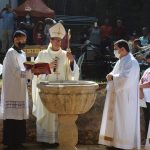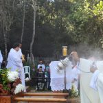 O dia começou com a celebração da Santa Missa nas ruínas da antiga capela. O bispo diocesano, Dom José Eudes Campos do Nascimento, presidiu a santa missa, que foi concelebrada pelo administrador da Paróquia de Santo Antônio e da Bem-Aventurada Nhá Chica, Padre Elissandro Campos do Nascimento. Ao lado da réplica da Pia Batismal, Dom José Eudes convidou os fiéis a renovarem os compromissos do Sacramento do Batismo e aspergiu todos com água benta.