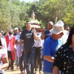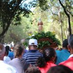 Logo após, os devotos saíram em caminhada com a pequena imagem da beata pelas estradas e ruas da comunidade até a Igreja Matriz de Santo Antônio. Durante todo o percurso, foram entoados cantos e rezado o santo terço pedindo a intercessão da Beata Nhá Chica sobre os devotos e fiéis.