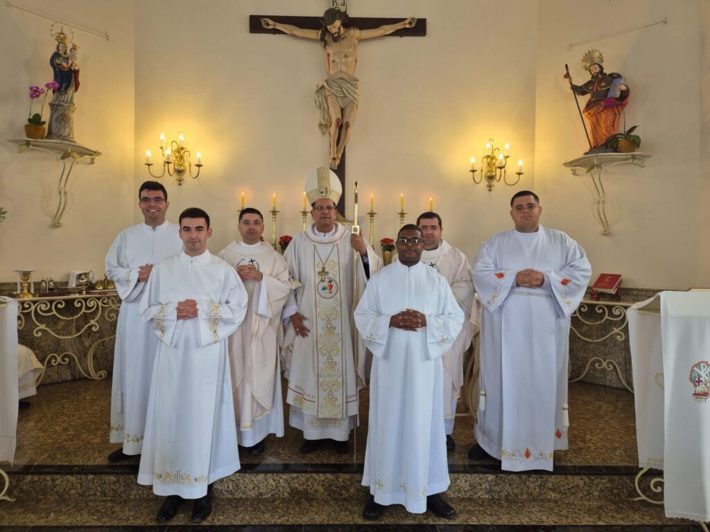 Na manhã deste sábado, 9 de agosto, a Diocese de São João del-Rei viveu um momento de alegria e esperança com a instituição de quatro seminaristas da Etapa da Configuração (Teologia) no Ministério de Leitor. Após ouvir o parecer do Conselho de Formação, Ordens e Ministérios, o bispo diocesano, Dom José Eudes Campos do Nascimento, aprovou o pedido de admissão do seminarista Gabriel Antonio da Silva (Itutinga – Paróquia Santo Antônio de Pádua), do seminarista Jeferson Djalma Coimbra (Dores de Campos – Paróquia Nossa Senhora das Dores), do seminarista Jordano Paulo Magalhães Fuzatto (São João de-Rei – Paróquia Imaculada Conceição) e do seminarista Luís Alberto dos Santos (Resende Costa – Paróquia Nossa Senhora da Penha).