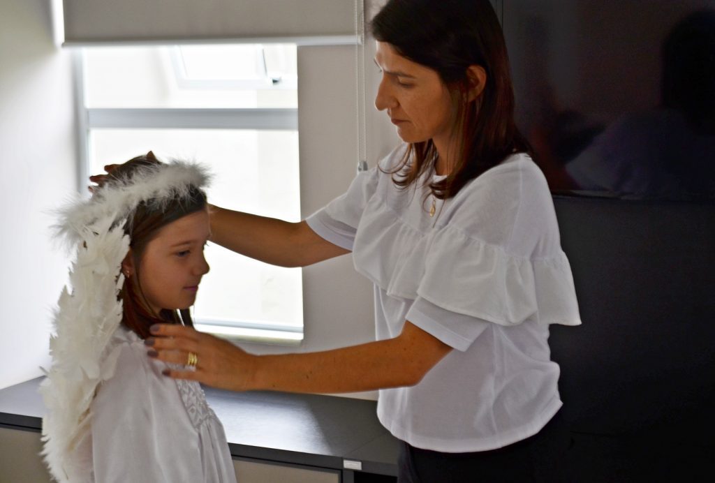 É o momento de incentivar, presentear as criança com túnicas de cetim, diadema e um par de asas. De despertar o gosto pela tradição e fé.