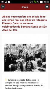 Na próxima sexta-feira, 18, será lançado um aplicativo sensacional sobre a Semana Santa de São João del-Rei. O tradicionalismo das cerimônias, que perpetuam há mais de três séculos, ganham um ar de modernidade a partir do recurso tecnológico, elaborado por estudantes da Universidade Federal de São João del-Rei. O projeto, que faz parte do Trabalho de Conclusão de Curso (TTC) dos estudantes, apresenta conteúdos de textos, áudios e fotográficos.