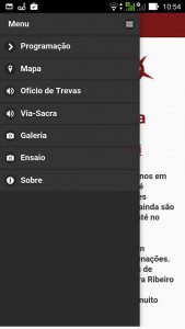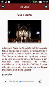 Toda a programação da Semana Santa está presente e dividida em dois formatos: a programação diária e por temas, como missas e procissões. Foram resgatados áudios da cerimônia do Ofício de Trevas, executados pela Orquestra Ribeiro Bastos. Um ensaio fotográfico será feito durante toda a Semana Santa e postado no aplicativo em tempo real. Outra novidade é a tradicional Via Sacra, narrada – com exclusividade para o app – pelo Bispo Diocesano, Dom Célio de Oliveira Goulart.